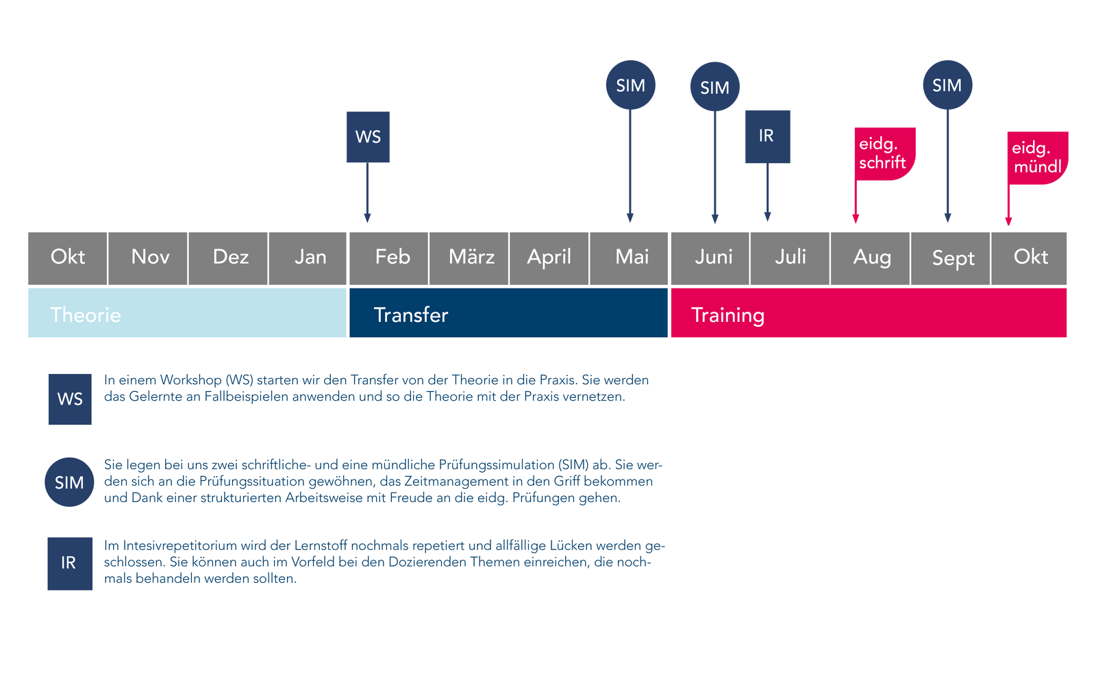 - Eidg. Prüfungen: August schriftlich / Oktober mündlich
